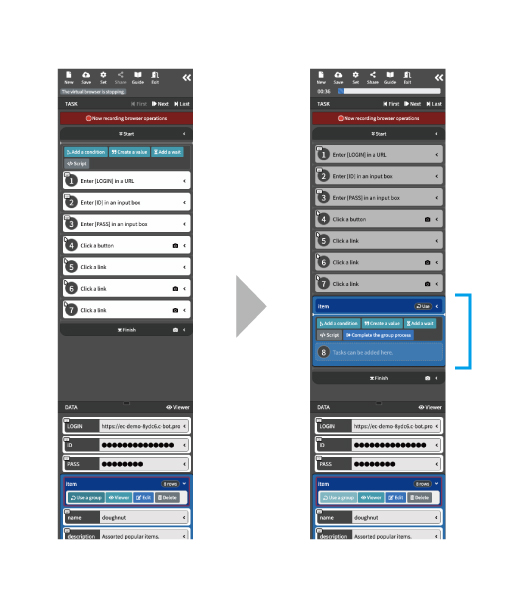 Also, by setting a breakpoint and clicking "Execute," processing can be executed up to the task where the breakpoint is set.